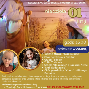 W przyszłą niedzielę odbędzie się XIV Szaflarzańskie kolędowanie, które jest wsparciem na rzecz rehabilitacji dwójki naszych dzieci – Jasia Kułacha i Lilianki Głodziak. Rozpocznie się ono o 15.00 koronką do Bożego Miłosierdzia, a następnie odbędzie się występ…